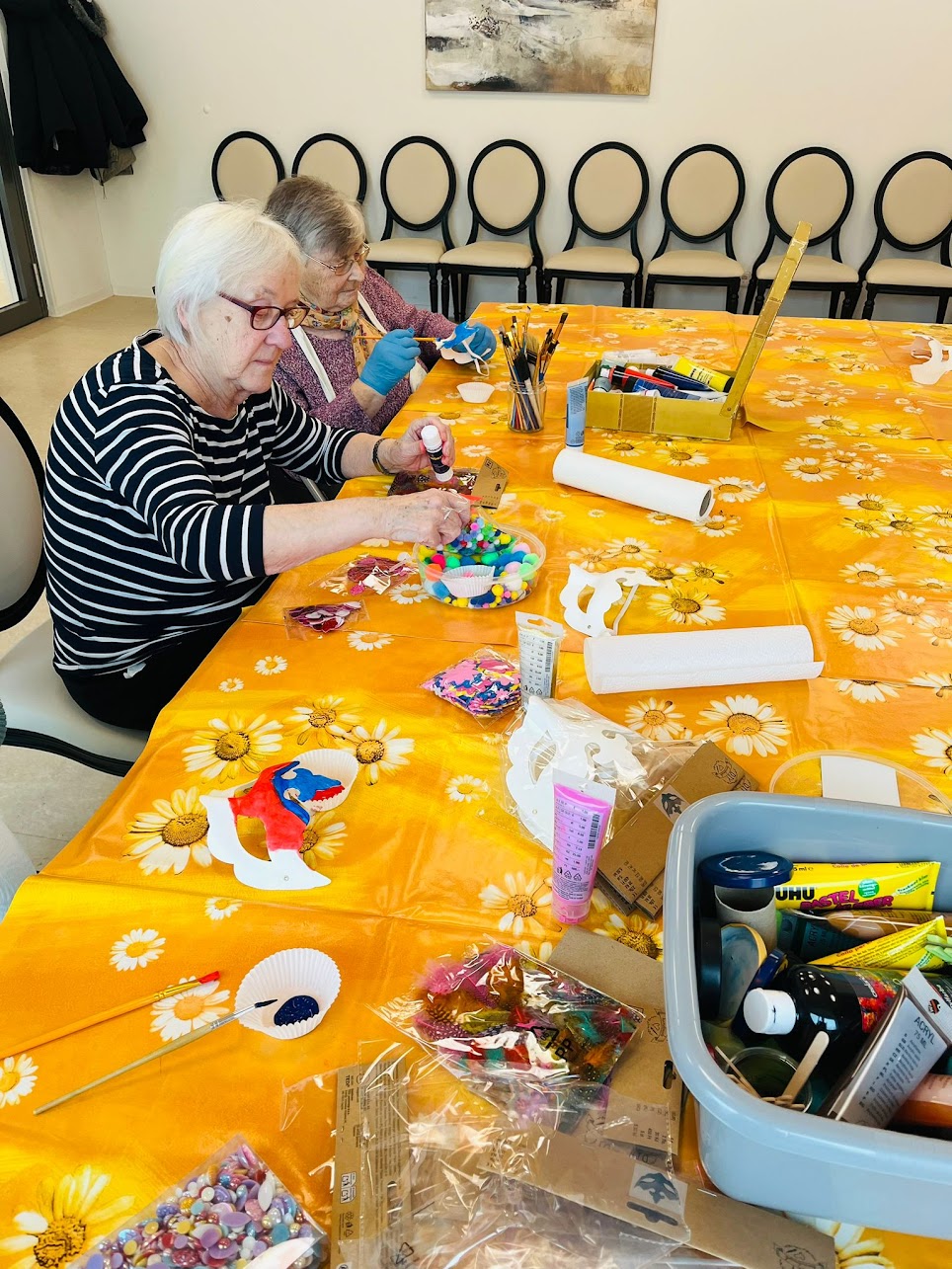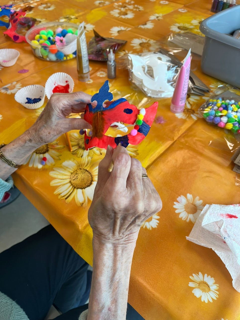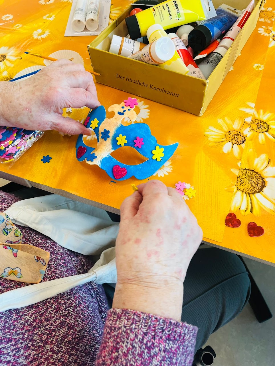 Während die Hände kreativ waren, haben unsere Bewohner Erinnerungen ausgetauscht: von früheren Kostümen, unvergesslichen Feiern und jeder Menge Faschingsspaß. Ganz nebenbei entstanden dabei richtig tolle kleine Kunstwerke – fast wie von selbst.