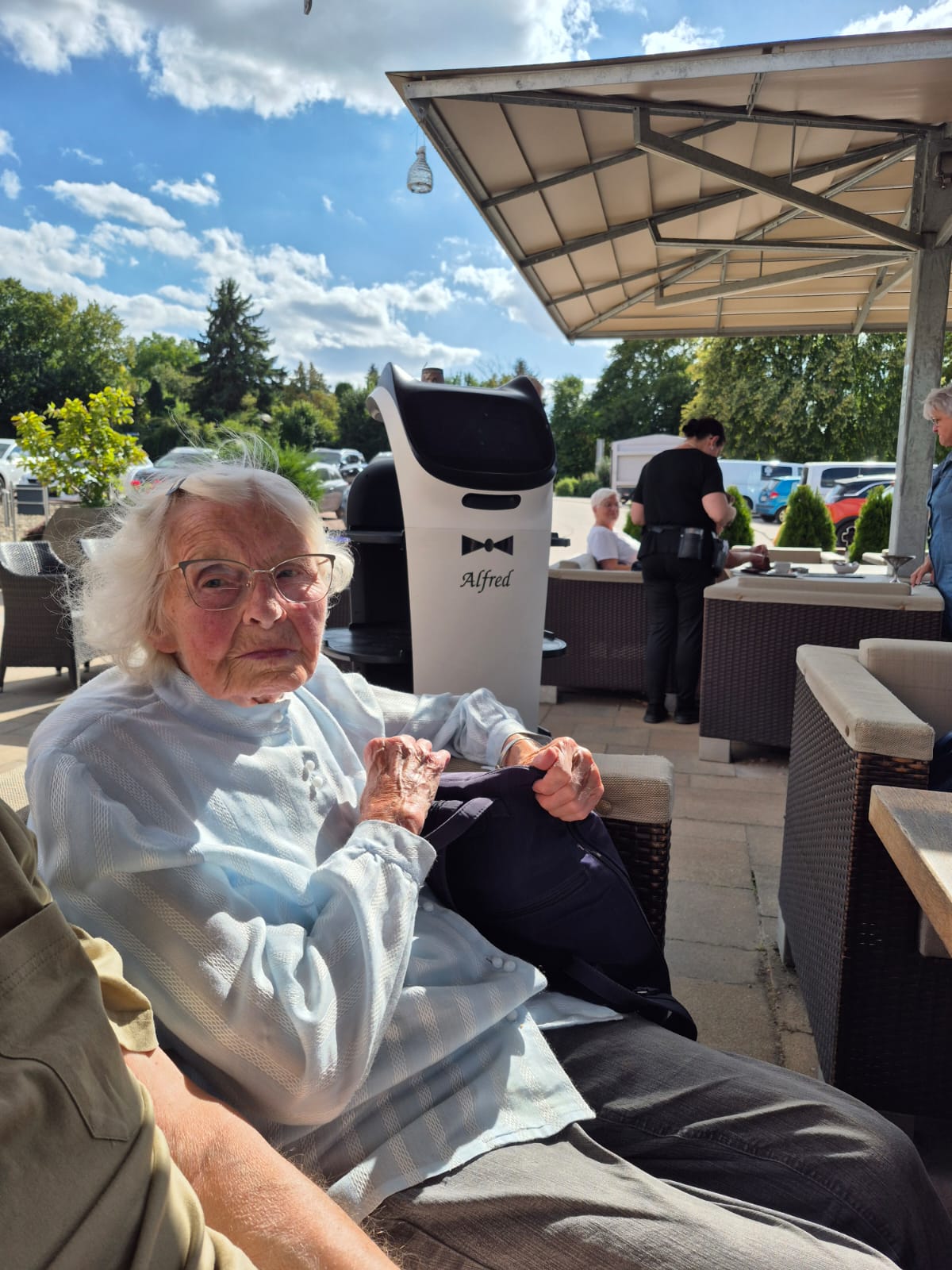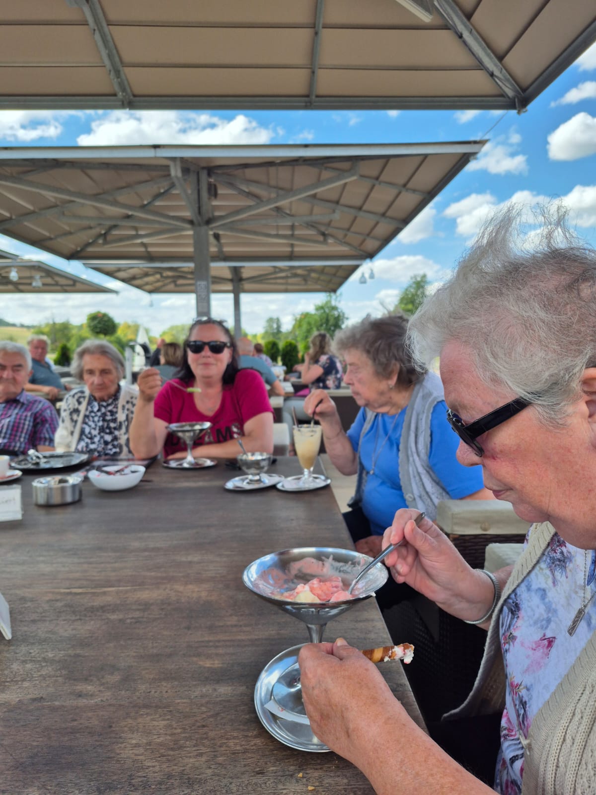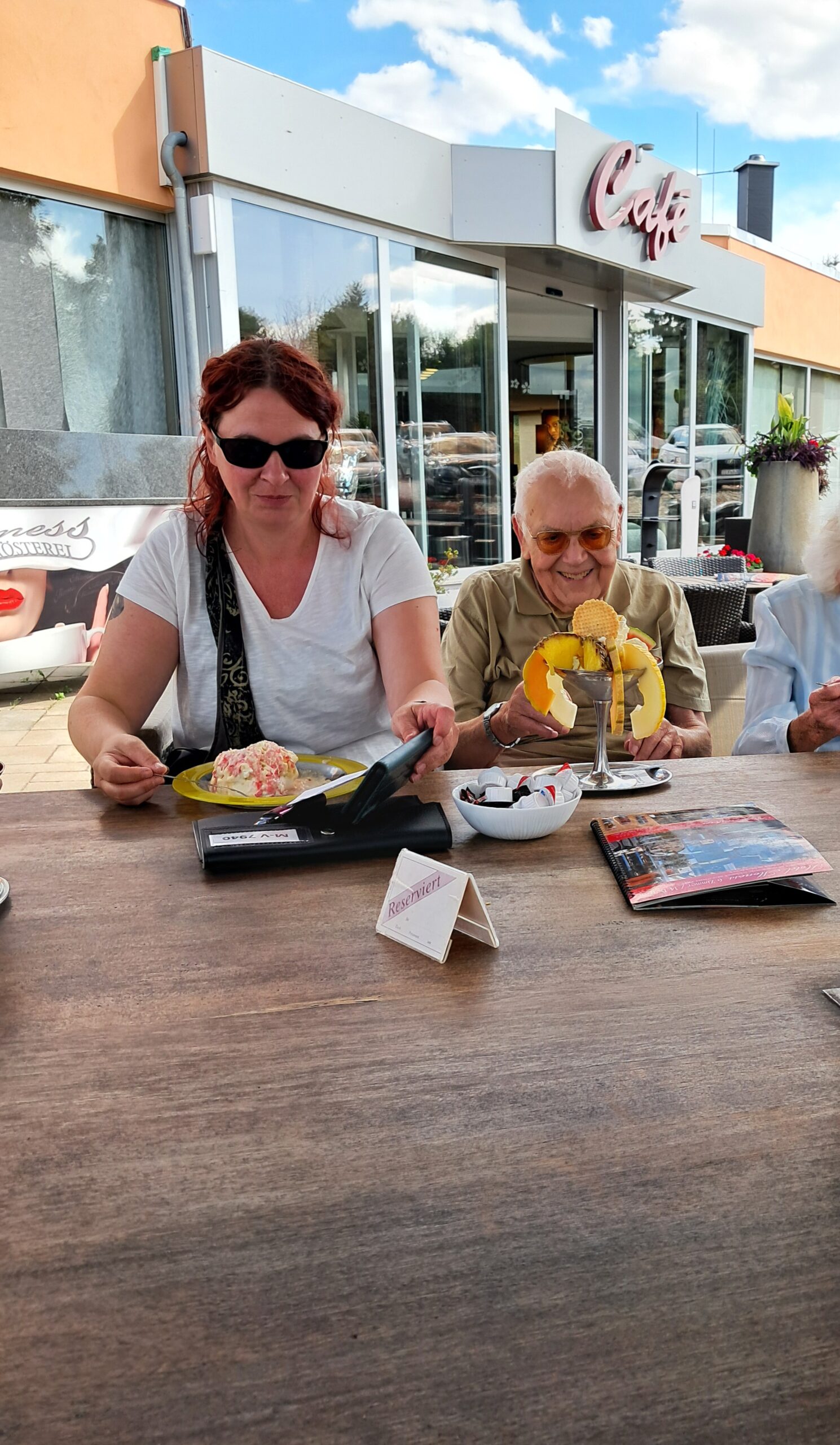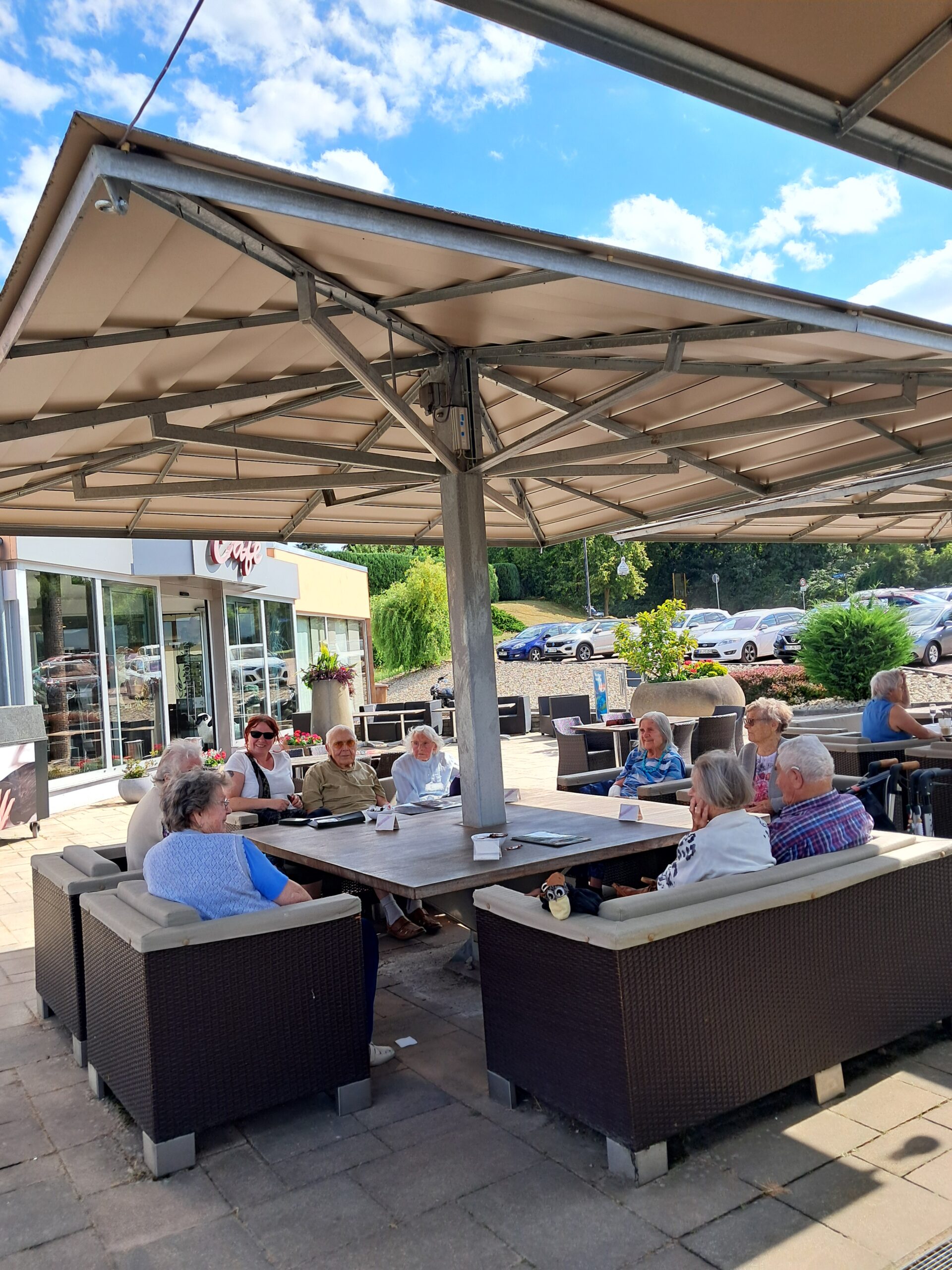Durch die wunderschöne Saale-Unstrut-Region – die sogenannte Toskana des Ostens – ging es vorbei an Burgen, Klöstern, Rittergütern und sogar dem „Himmelreich“. 🏰⭐ Ziel war die Terrasse der Kaffeerösterei Moness. Dort warteten Eis, Kuchen, Kaffee und auch das ein oder andere kühle Blonde auf uns. Bedient wurden wir dort von echten Hightech-Helfern: kleinen Roboter-Kätzchen mit Namen wie Alfred, Olaf, Hildegart oder Gertrud. 🐱🤖 Fast wie eine Szene aus einem Sci-Fi-Film – und für die Bewohner unseres Landhauses Schkölener Hof ein rundum gelungener Ausflug für Augen, Herz und Gaumen. 💚