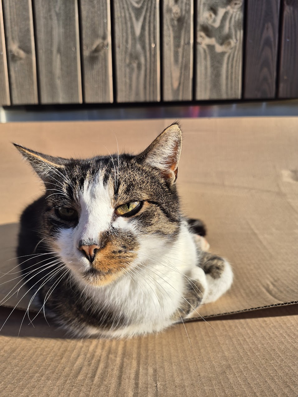 Und während drinnen fleißig gewerkelt wurde, sorgte Kater Gustav 🐱 draußen für seine eigene Wohlfühloase – und hat sich die bequemste Pappe der Welt dafür ausgesucht. 🏡